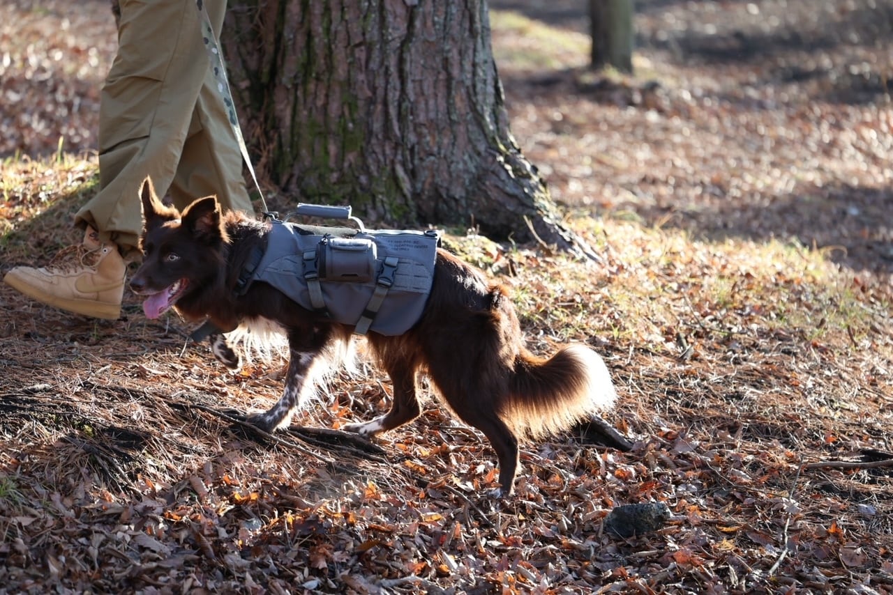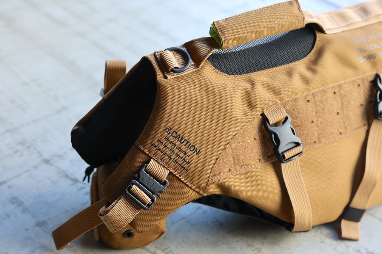 アメリカの軍用犬がつけているようなタクティカルベストをイメージしました。