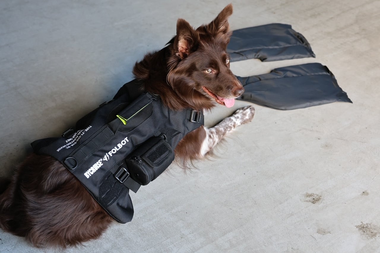 アメリカの軍用犬がつけているようなタクティカルベストをイメージしました。