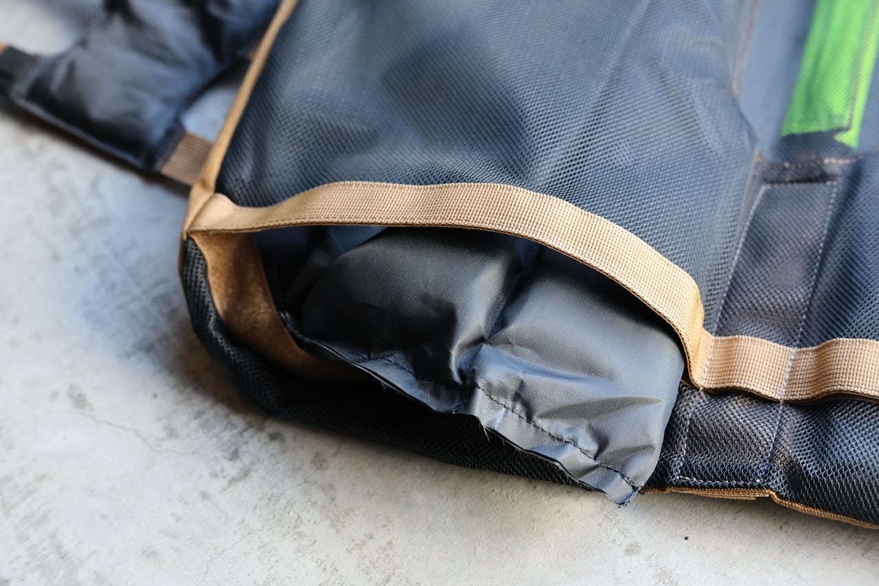 身体にあたる裏面は全面メッシュで、水抜けが良くなっております。